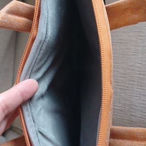 new, never used tablet case soft inside zipper pocket on front and zipper close, pockets where the handles are also orange coral color see photos 10 1/2" wide by 8" tall
