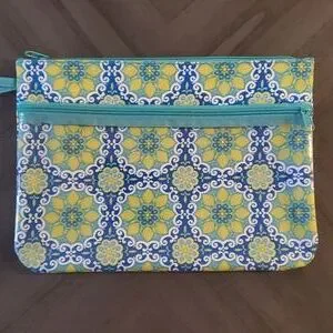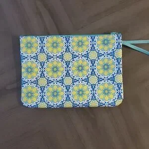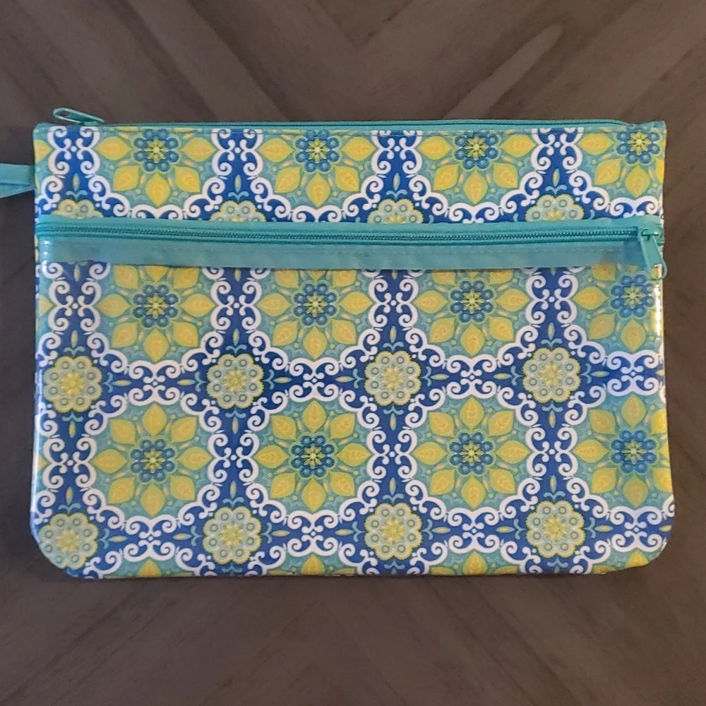 Tablet case with strap. Zippered top with a front zippered pocket for charger or accessories. NWOT. Approx 12 inches width by 9 inches height. Perfect for tablet, notebook, kindle, eReader, etc. Could also be used as a book holder. Versatile case for multiple uses.