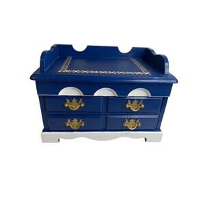 Tabletop Jewelry Box Bright Navy White Goldtone 8"h x 11"l x 6.5"d