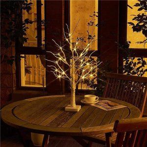🧿【LED pre-lit birch bonsai tree】: Overall height 2FT with a 3.94 inch x 3.94 inch base ,24 LED light, warm white,white birch tape material. Perfect as a gift for your friends.