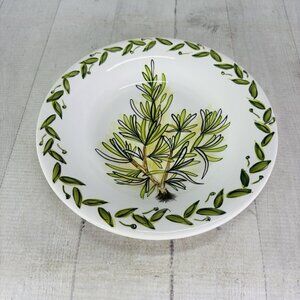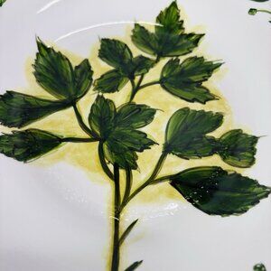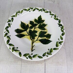 Tabletops BOTANICAL HERBS Green Leaves Hand Painted Lunch Salad Plates Set of 5