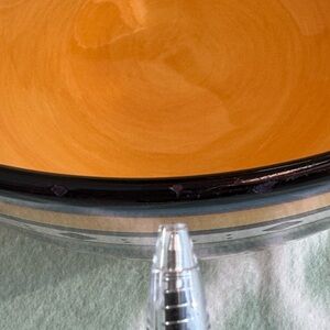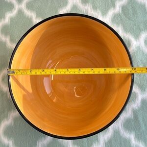 A large 10” diameter 5.5” deep bowl from Tabletops Gallery, design is called Argentina. Southwestern colors and motifs. Hand painted and hand crafted. Nearly Perfect condition, only has a few flea bite chips on the rim that is covered with food dye, you can’t even notice it when in use, see last photo. 3lb 10oz. I have one other size listed. Listing separately due to weight.