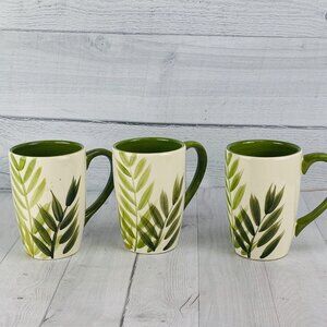 Tabletops Gallery COSTA SQUARE Sage Green Palm Leaves Large Coffee Cup Mug Set 3