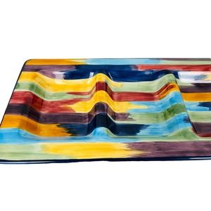 Tabletops Lifestyles MADRID Rainbow Ceramic Divided Serving Platter Tray 18.75"
