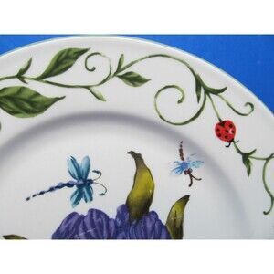 Tabletops Unlimited Botanical Garden 10 1/2" Dinner Plate Purple Flower Lady bug
