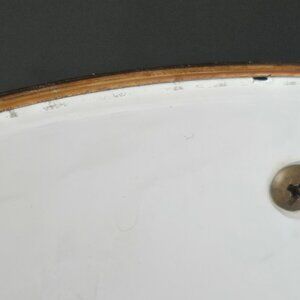 this is a pretty white enameled collander by Tabletops Unlimited. This is a pre owned item in great condition, vintage from the 1980's. Very clean and shiny, the bronze and silver colored trim is in great shape, the only thing is a couple of marks along the rim in one spot, photo shows close up, otherwise in excellent condition... Would make a nice addition to any modern farmhouse kitchen or any white kitchen as well! Fill it with fresh fruit and give it as a gift! The possiblities are endless!