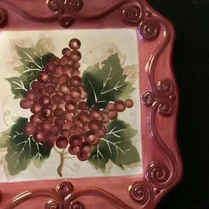 Tabletops Unlimited Merlot Grapes Embossed Handpainted Plate 11”