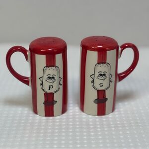 Add a playful touch to your dining table with this charming red and white salt and pepper shaker set. Perfect for everyday use or special occasions.