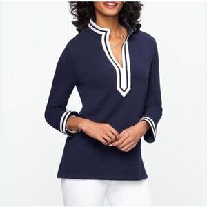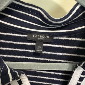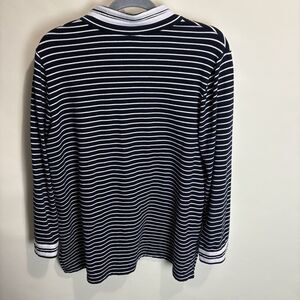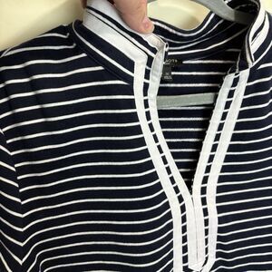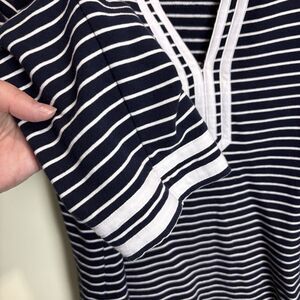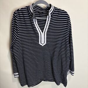 Tablots Navy White Stripe Contrast Trim V-Neck Nautical Tunic Blouse 1X Beach