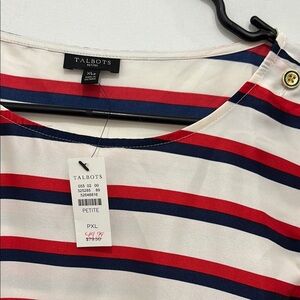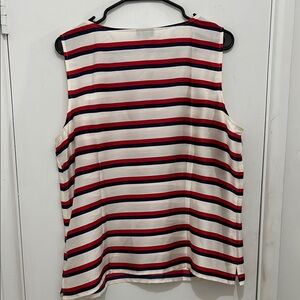 Elevate your wardrobe with this chic sleeveless top featuring bold red, blue, and white stripes. Perfect for any occasion, this top offers both style and comfort.