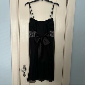 Taboo Dress Black Sparkles Square Neck Belt Bow Y2K Prom Whimsigoth LBD Sz 10/12