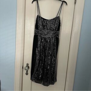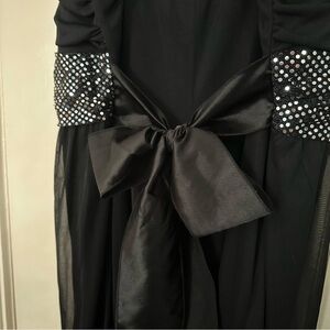 The perfect little black dress with sparkle and a back bow. Shiny for prom or a dainty enough for church.