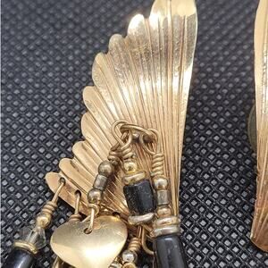 Tabra Vintage Angel Wing Earrings in Gold Filled with Black Accents, 80s Retro