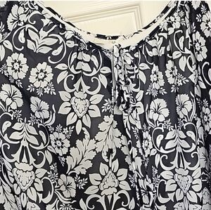 Tacera 2X Boho Floral Border Tunic Dress Black White Yellow Flowy Shift