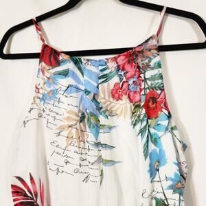 Tacera $45 Large Spaghetti Strap White Pink Green Blue Tropical Floral Sundress