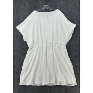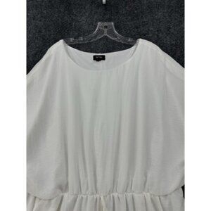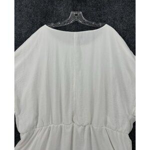 Tacera Beach Boho Women’s Plus 3X White Lined Short Sleeve Elastic Waist Dress