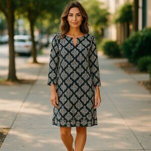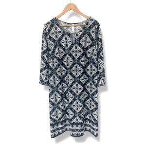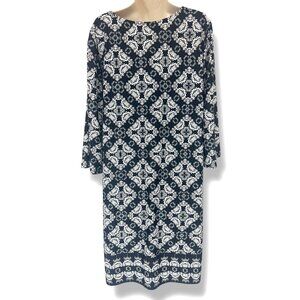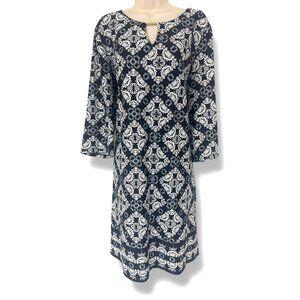 Tacera Black & White Print Keyhole Shift Dress Size 1X 16 Plus All-Season Classy