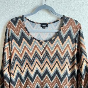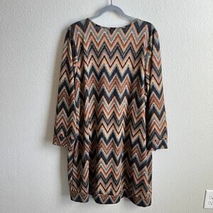 Tacera Brown Chevron Print Sweater Dress Women's 2X Pockets Stretch