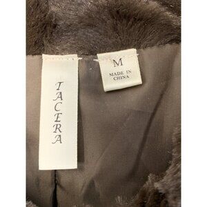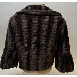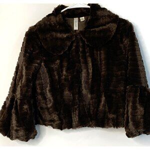 Tacera Brown Faux Fur Crop Jacket M Satin Lined Bell Sleeve EUC 7244