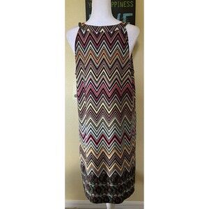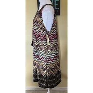 Tacera Chevron V-neck Tassels Sleeveless Knee Length Multicolored Dress L NWT