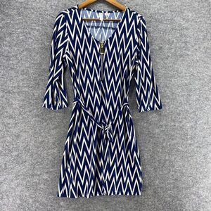 Tacera Dress Women S Small Blue Striped Sheath Short Zipper V-Neck Belted Casual