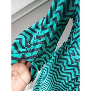 Tacera Women's Aqua/Black Polyester Long Sleeve V-Neck Knee Length Dress Size PM.