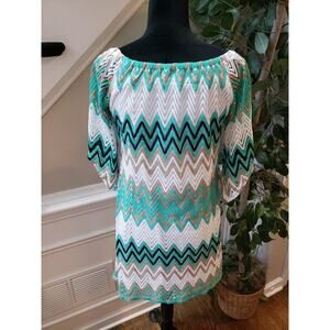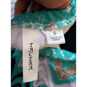 Tacera Mini Dress Women's Small Multi Chevron Print Lace Long Sleeve Round Neck