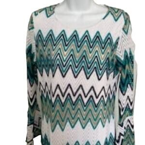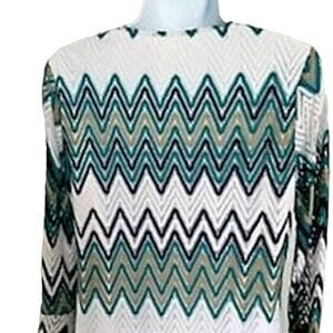 Tacera Size M Crochet Chevron White & Green & Blue Mini Dress Style#5228-1226KK