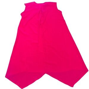 This Vibrant Hot Pink Sleeveless Dress Is A Standout, With A Flattering V Neck And A Handkerchief Style Hemline Adds Movement And A Modern Edge, Perfect For Dressing Up Or Down, Relaxed Fit, Flowy, Breathability, Vacation, Summer, Lightweight, Boating, Beach, Pool
