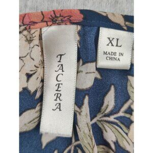 Tacera Women's Navy Blue Hi- Low Floral Top Size XL