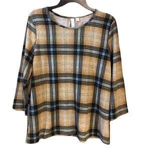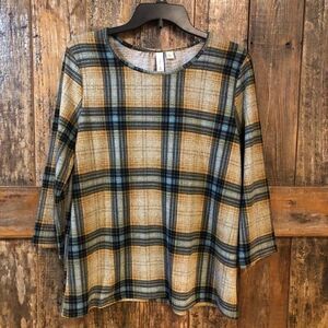 Tacera Sz L Yellow Blue Plaid Collegiate Academia Flannel Gorpcore Top