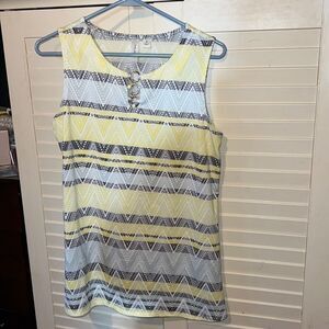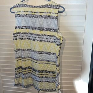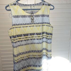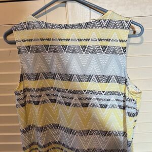 Tacera Zigzag pattern lightweight blouse, has a textured feel to it, does have a nice stretch, beautiful gold detail at the neckline, size small