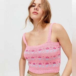 Tach Clothing Mayra Floral Knit Cropped Tank M Pink Cotton