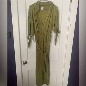 Beautiful green plisse v neck elastic waist comes with detachable belt