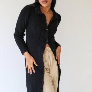 The Zoa Knit dress from TACH is a gorgeous sweater dress that can be worn as a cardigan as well. Simple button up collar and midi length makes this dress so simple yet so special.