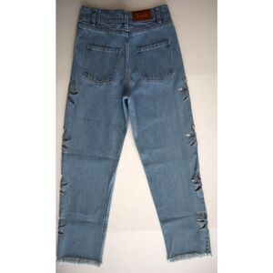 Tach x Free People Women's Sz XS Blue Jazmin Cut-Out Flower Embroidered Denim Jeans