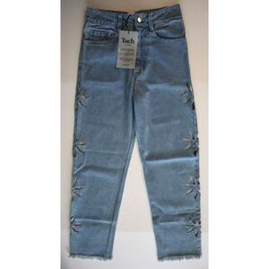 Tach x Free People Sz XS Blue Jazmin Cut-Out Flower Embroidered Denim Jeans