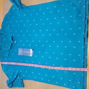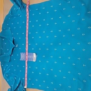 Tackle & Tides Size L Bright Blue with White Anchor Pattern Polo Style Shirt NEW. Please refer to measurements in photos to ensure proper fit.