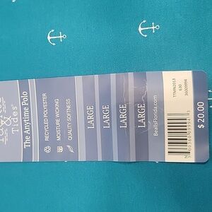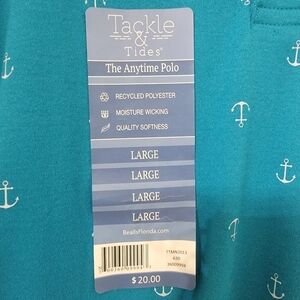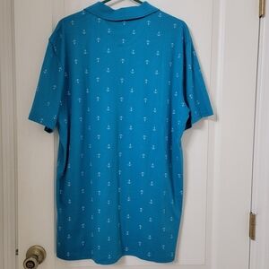 Tackle & Tides Size L Bright Blue with White Anchor Pattern Polo Style Shirt NEW