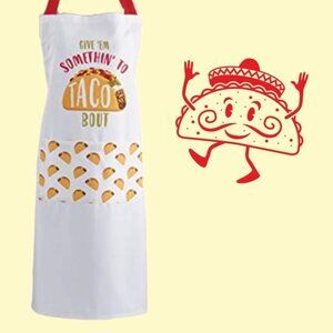 The apron is made from durable cotton with a playful taco design, while the coordinating hot pads and bowls make it easy to prep, serve, and entertain. Whether for family taco night, Cinco de Mayo, BBQs, or casual entertaining, this set brings fun and function to the kitchen.