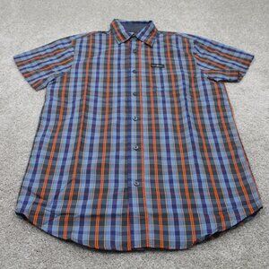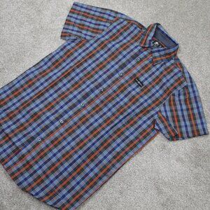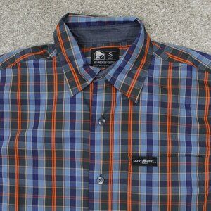 Taco Bell Employee Shirt Mens Small Blue/Orange Plaid Poly/Cotton Short Sleeve