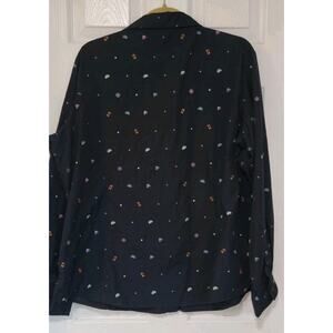 Taco Bell Shirt Women's XL Black Hot Sauce Print Button Up Long Sleeve