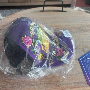 Bring back peak Y2K energy with this Ed Hardy x Taco Bell limited edition trucker hat. It’s everything you love about early-2000s streetwear—bold rhinestone hits, gold embroidery, and that classic mesh snapback with a curved brim—all wrapped into one collectible collab.