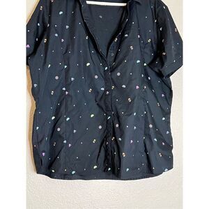 Taco Bell Women’s Button Up Shirt Black All Over Print Pattern Size XL