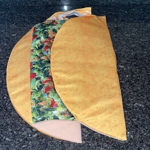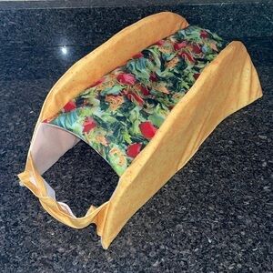 Taco dog Halloween costume. Size M. 18 1/2” across base of taco. 8 1/4” base to top of taco. 9” taco opening. Velcro closures underneath and at chest. Very good pre owned condition