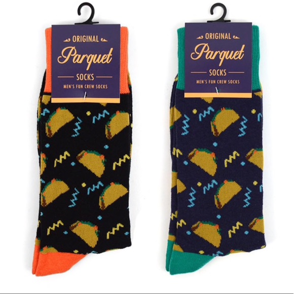 One pair of men’s crew socks for shoe sizes 6 - 12.5, 70% cotton 25% polyester 5% spandex, navy blue background and green on trim, toe and heel!