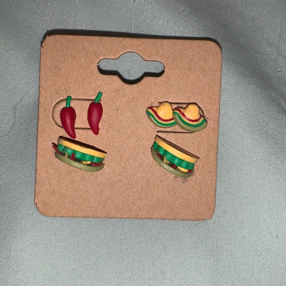 3 pairs. Adorable polymer earrings. Chiles, tacos and sombreros.