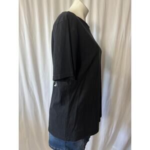 With measurements of 5" shoulder width, 8" sleeve length, 44" chest width, and 27" length, this tee offers a relaxed fit for size large. It is in good condition with minor signs of wear (as shown in photos), making it a standout addition to your wardrobe.