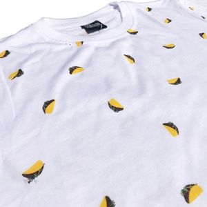 Taco print t-shirt made with 55% cotton and 45% polyester. Brand new with tags. Machine wash with cold water.
