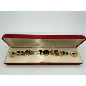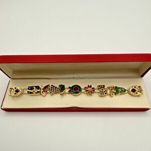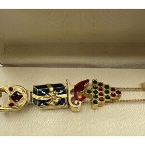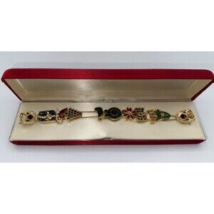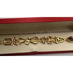 Tacoa Christmas Charm Bracelet 7.5" Gold Tone Boxed Holiday Jewelry Gift